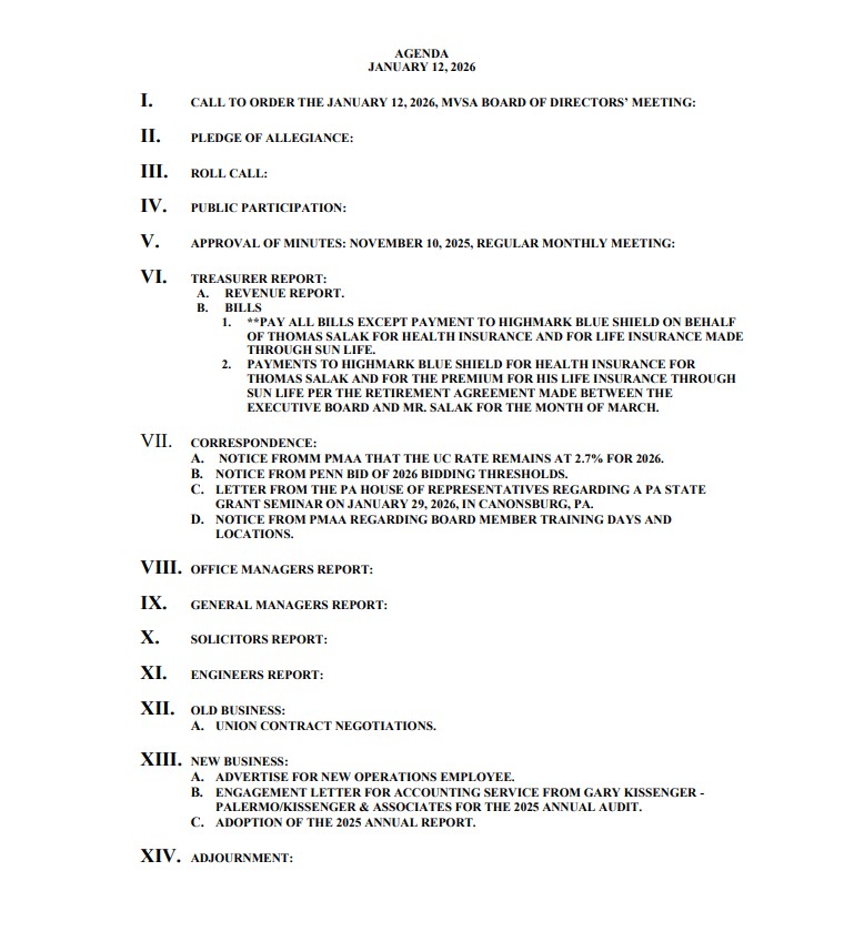 AGENDA JANUARY 12 2026
